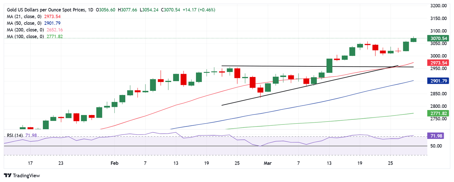- Gold price refreshes record highs above $3,070 early Friday, awaiting US PCE inflation data.