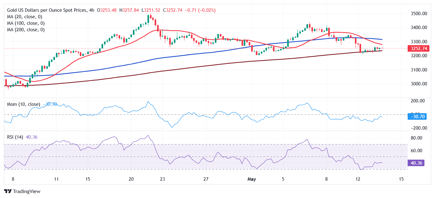 Spot Gold consolidates losses on Tuesday, holding above the $3,200 mark yet unable to recover the ground lost on Monday. Financial markets retain the positive mood triggered by news of de-escalating trade tensions between the United States (US) and China, as both countries agreed to reduced tariffs on each other for 90 days.