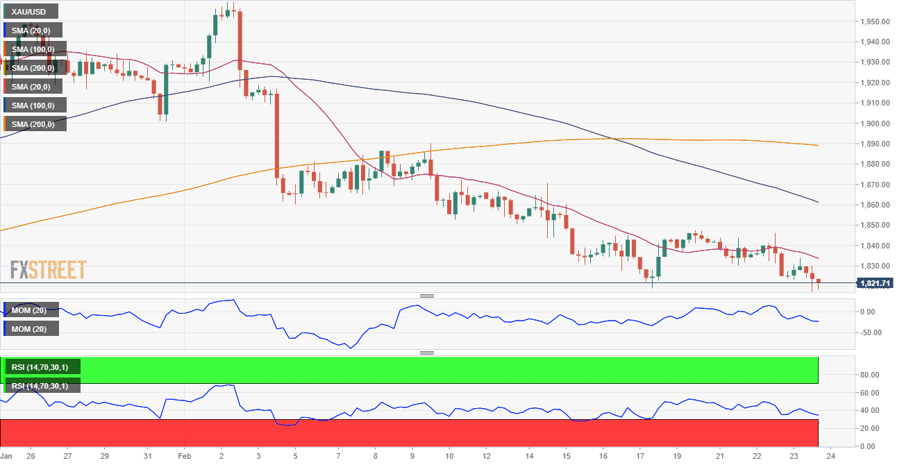 - XAU/USD trades near a fresh February low with room to test the $1,800 threshold.