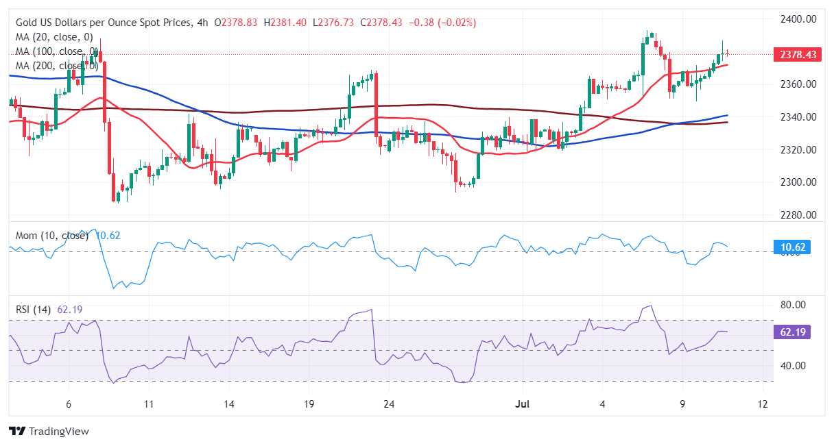 Gold keeps trimming Monday losses and flirts with the $2,380 level in the American session, as a better market mood undermines demand for the US Dollar. In the absence of relevant macroeconomic data, investors maintained the focus on Federal Reserve (Fed) Chairman Jerome Powell, who testified before Congress for a second consecutive day.
