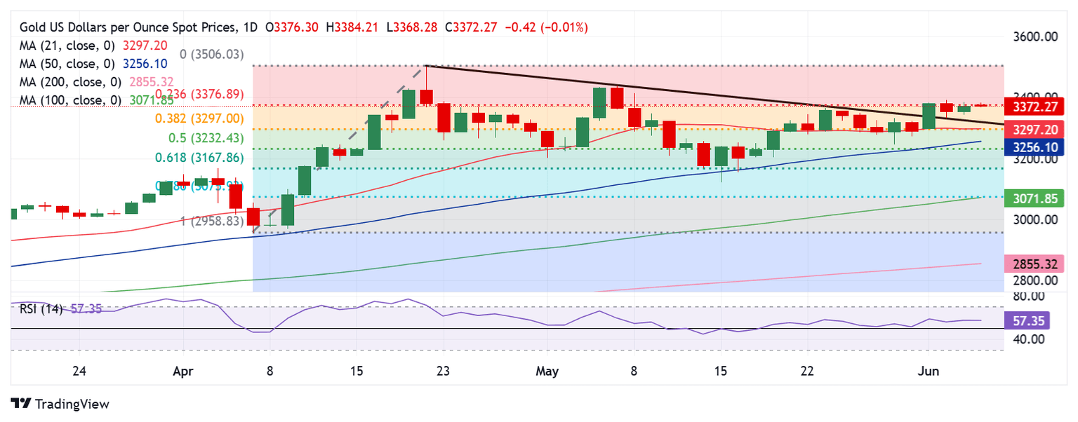 Gold buyers must find acceptance above the 23.6% Fibo resistance at $3,377 on a daily candlestick closing basis to resume the recent upswing toward the lifetime highs of $3,500.