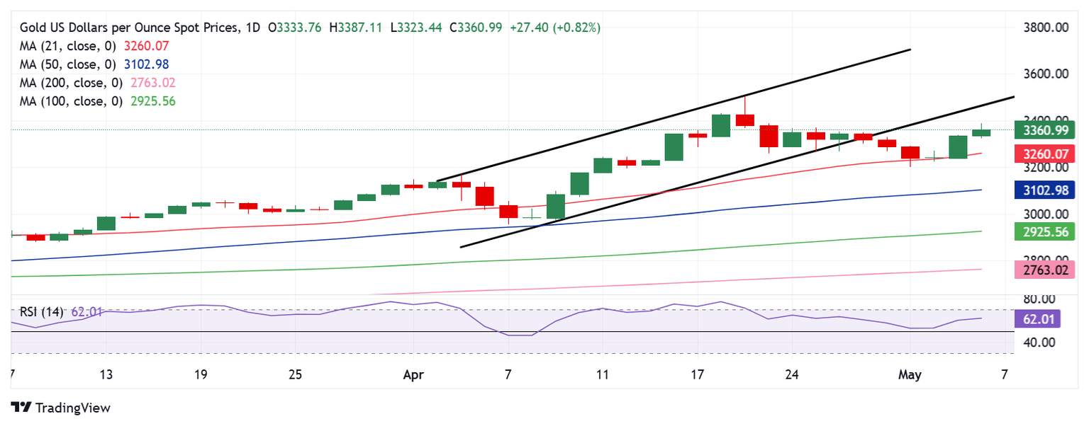 Gold price holds the bounce from the critical 21-day Simple Moving Average (SMA) support, now at $3,260.