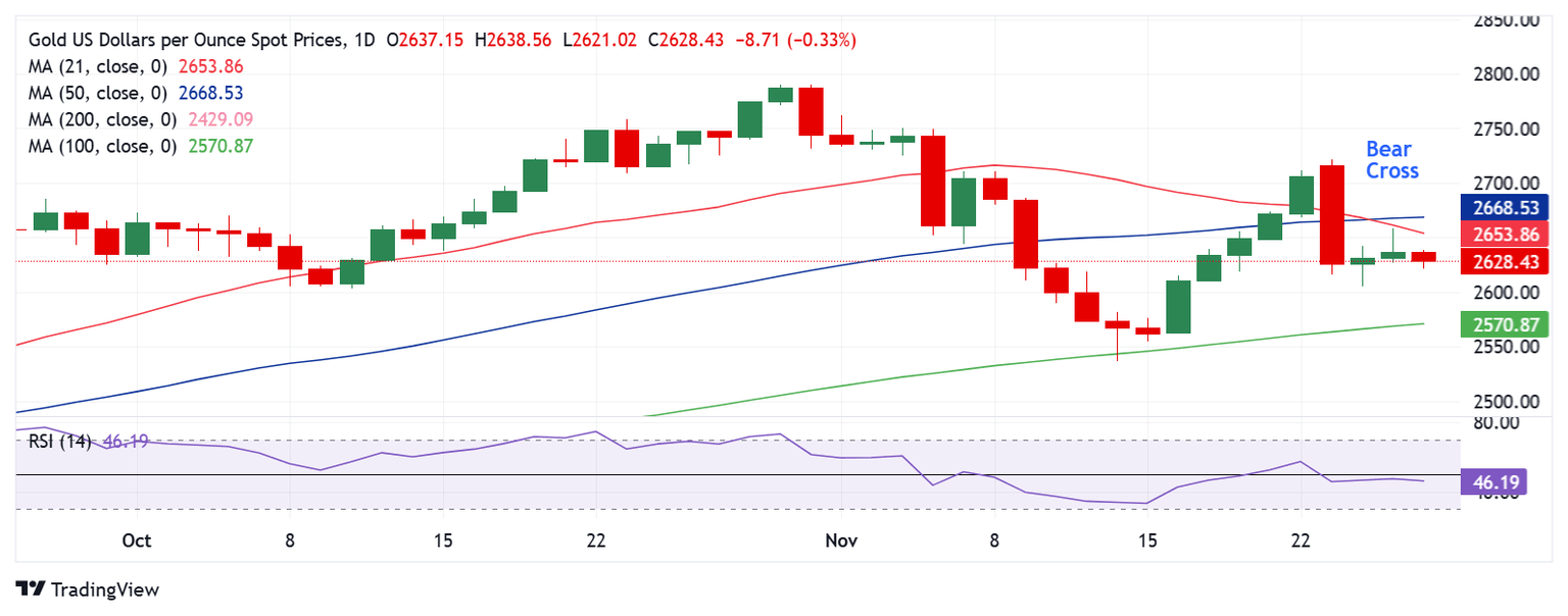 Gold Price Forecast: XAU/USD looks to revisit $2,600 amid Bear Cross on Thanksgiving Day