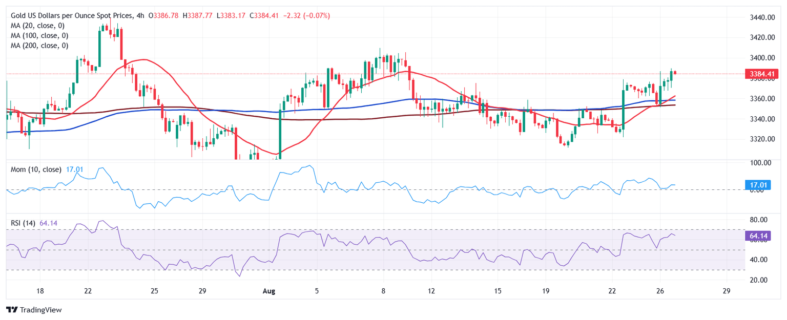 The better mood weighed on USD demand, helping XAU/USD to regain its bullish poise. The pair is neutral-to-bullish according to technical readings in the daily chart, as it held above all its moving averages. In fact, a flat 20 Simple Moving Average (SMA) provided intraday support at around $3,350. Technical indicators, in the meantime, turned north, although the Momentum indicator remains within neutral levels, reflecting limited buyers’ strength.