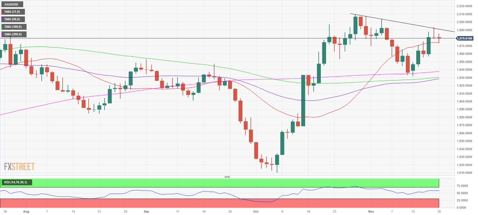 Gold Price Forecast: XAU/USD needs to defend 21-day SMA at $1,975 to sustain the upside