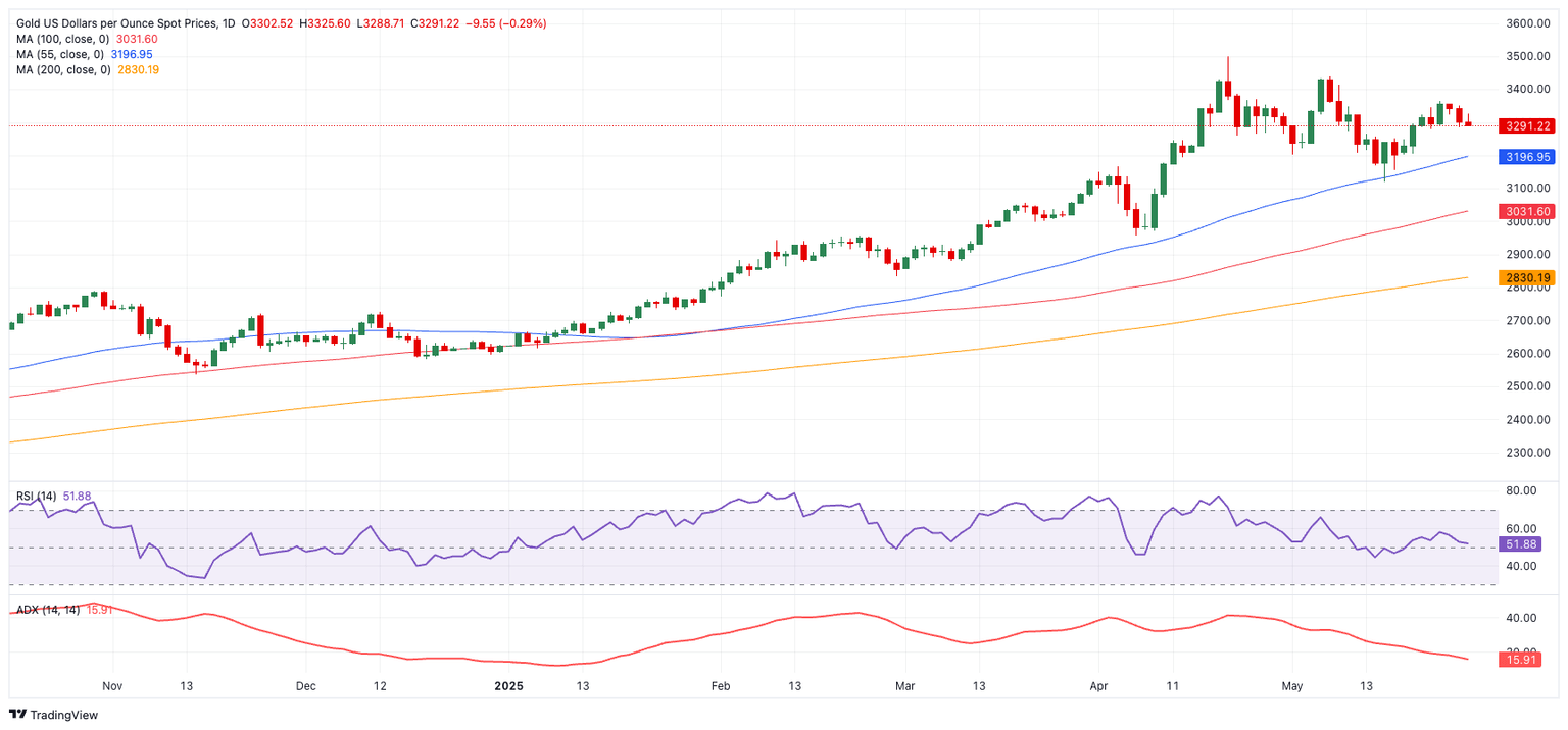 Gold prices added to the weekly leg lower on Wednesday, breaking below the $3,300 mark per troy ounce on the back of the persistent recovery in the US Dollar (USD) and the mild bounce in US yields across different time frames.