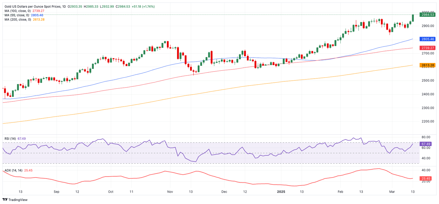 Gold prices (XAU/USD) advanced for a third consecutive day on Thursday, soaring to all-time highs past the $2,980 mark per troy ounce and setting the stage for a potential test of the psychological $3,000 threshold.