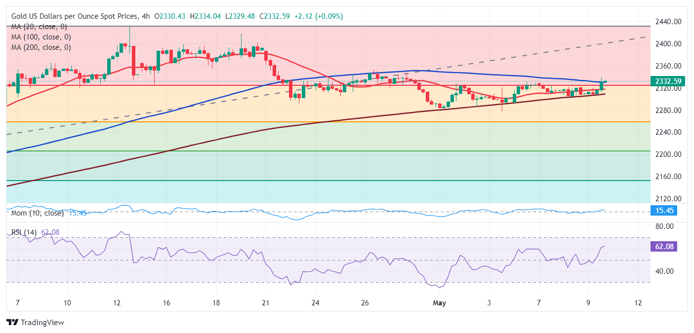 - XAU/USD may extend gains in the near term, needs to run above $2,340.