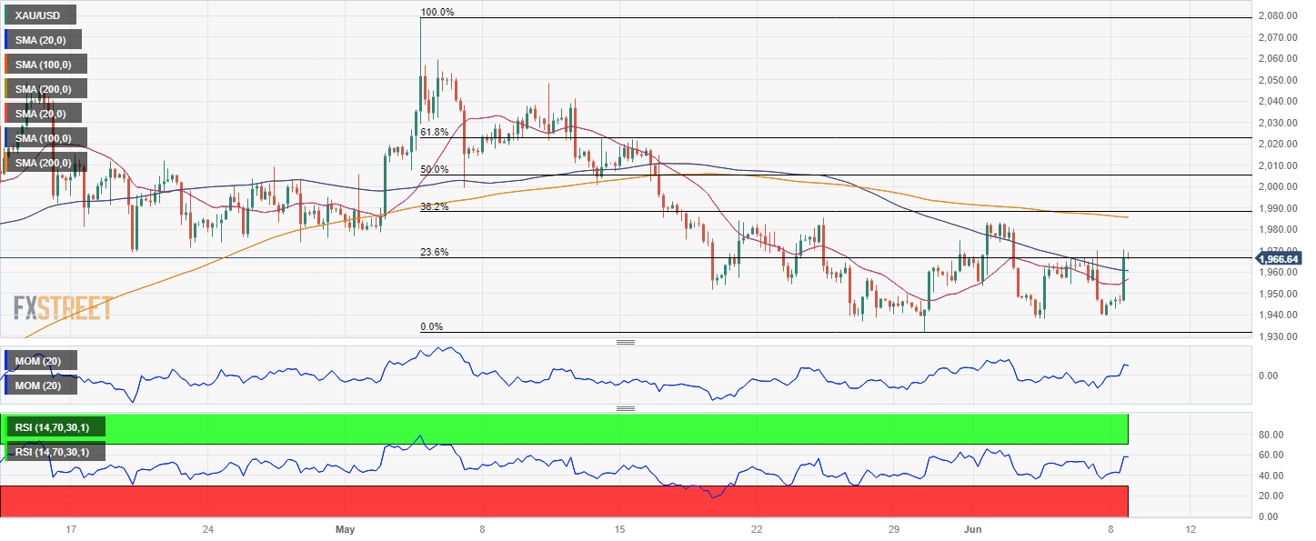 - XAU/USD could gather additional upward strength once above the $1,970 region.