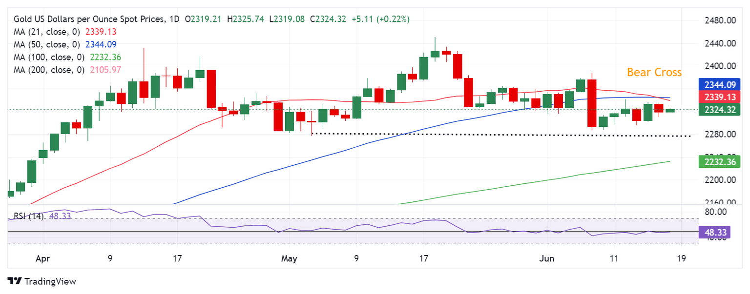 The Gold price upside is capped by the confluence zone of $2,345, where the 21-day Simple Moving Average (SMA) and the 50-day SMA hang around. On the other hand, the downside appears guarded by the May 3 low of $2,277.