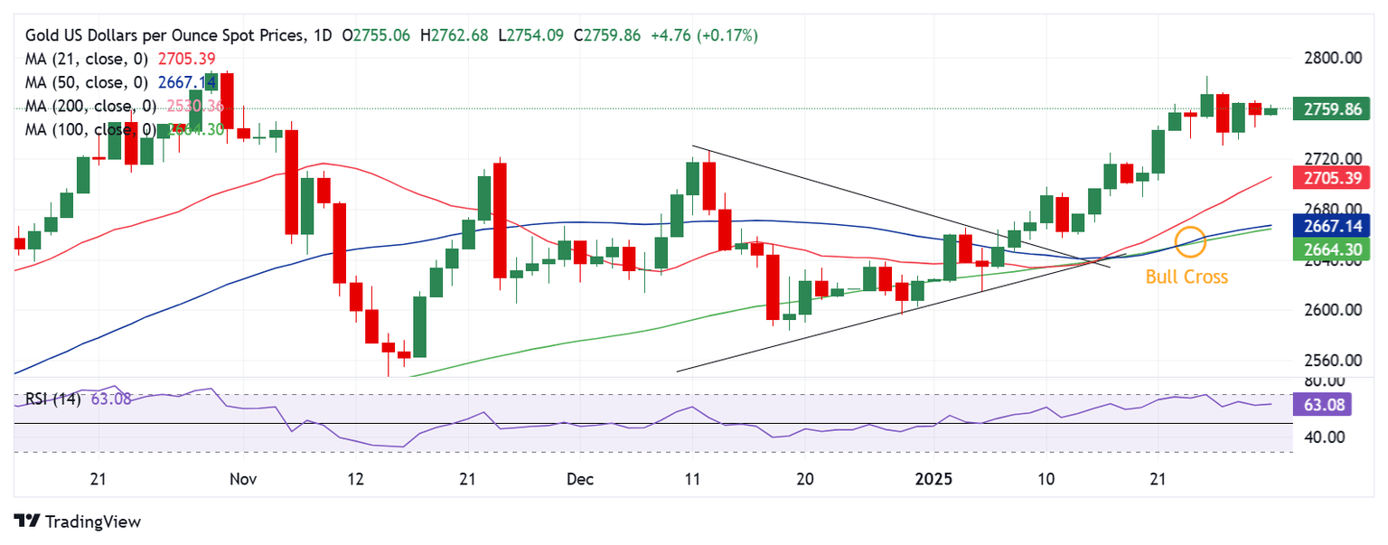 Gold price needs a sustained move above the static resistance at around $2,765 to take on the upside.