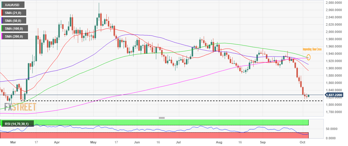 However, it remains to be seen if Gold price will extend the recovery momentum, as traders look to the mid-tier US weekly Jobless Claims data for a fresh impetus. Friday’s US NFP report will hold the key to determining whether it’s a dead cat bounce or a bullish reversal for Gold price. The US economy is likely to have added 170k jobs in September, down from the 187k reported in August. The Unemployment Rate is seen a tad lower at 3.7% while Average Hourly Earnings are expected to rise 4.3% in the reported period, at the same pace as seen in August.