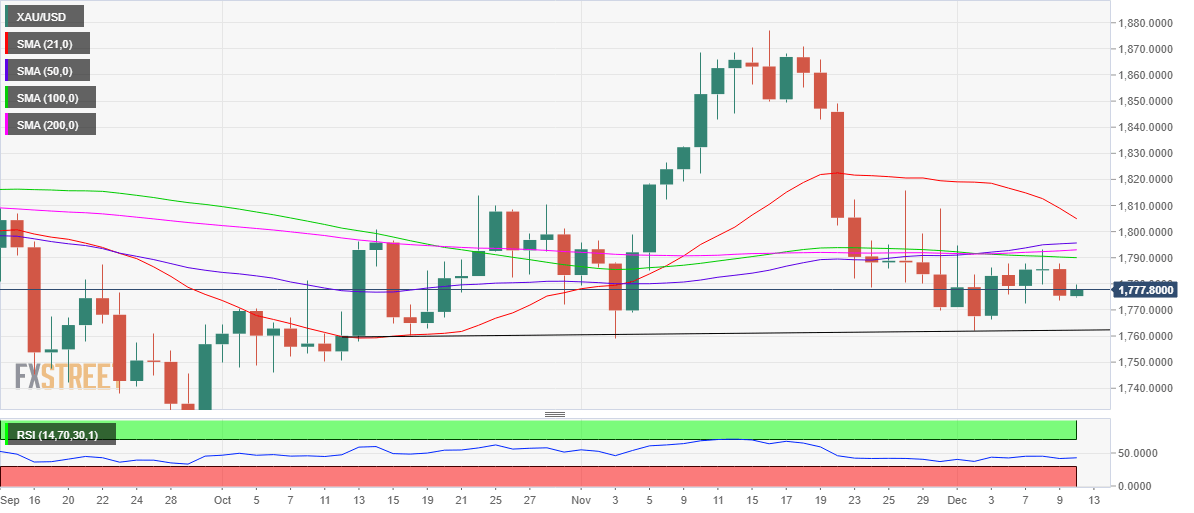 Gold price turned south on Thursday after witnessing a Doji candlestick at five-day highs of $1,793 a day before. Wednesday’s price action suggested that buyers could be facing bullish exhaustion, which got confirmed by the previous day’s drop to $1,773. The pullback in gold price came on the back of a broad-based US dollar rebound. Uncertainty over the Omicron covid variant, as well as, looming central banks’ decision hit the market mood and lifted the haven demand for the greenback. Although the losses were capped by the negative US stocks and Treasury yields.