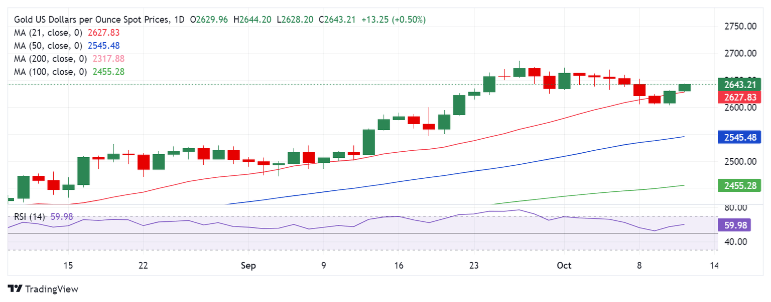 Gold price recaptured the 21-day SMA support-turned-resistance, now at $2,628, on a daily closing basis on Thursday, reviving the uptrend.