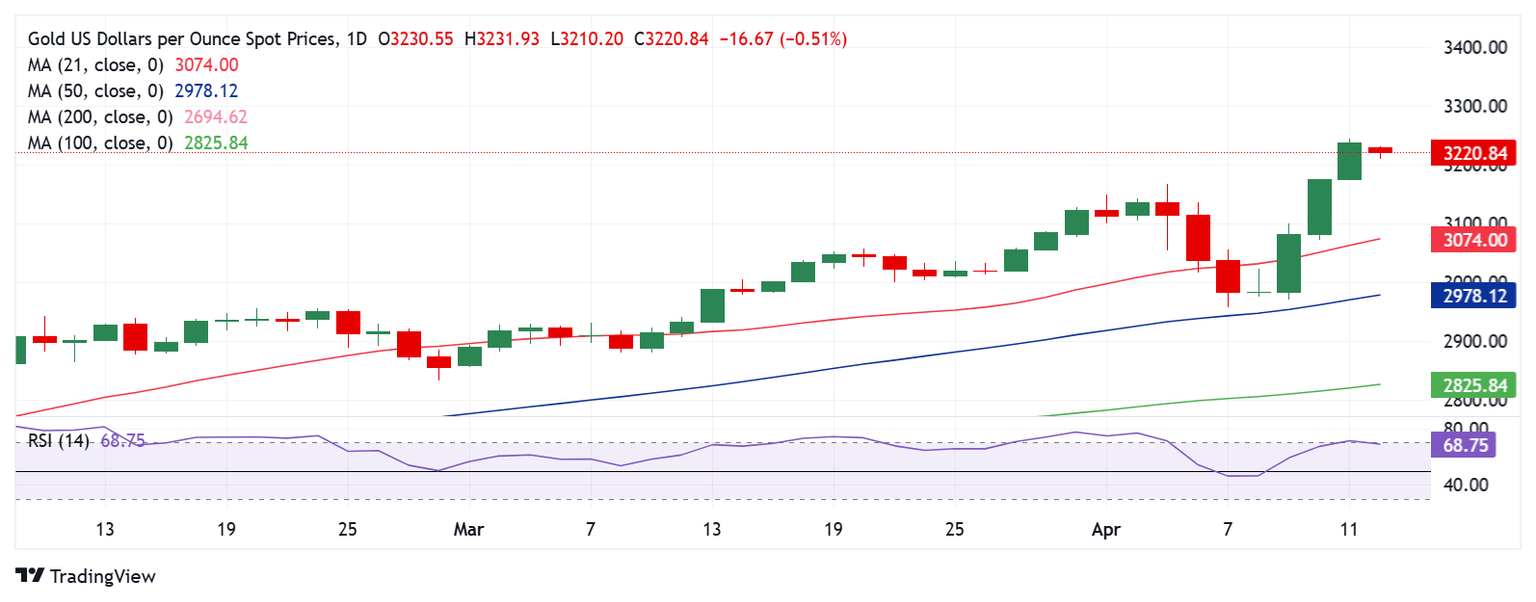 Gold price is sustaining its retreat from all-time highs of $3,245 reached on Friday, reverting toward $3,200 early Monday.