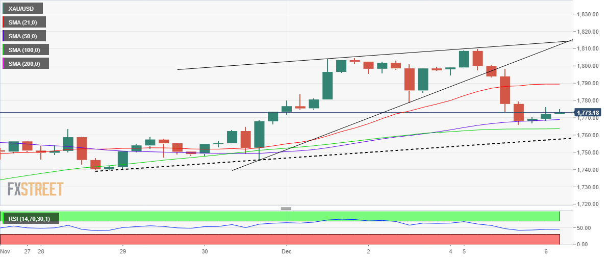 The sell-off took out the bullish 21-Simple Moving Average (SMA), now at $1,789, while the horizontal 50SMA at $1,769 came to the rescue of Gold optimists.