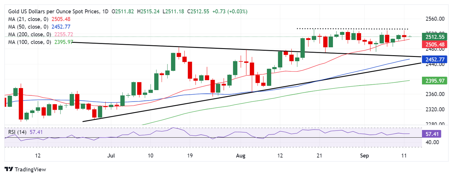 Nothing seems to have changed for Gold price from a short-term technical perspective. Buyers continue to stay hopeful as Gold price manages to yield daily closings above the 21-day Simple Moving Average (SMA), now at $2,505.