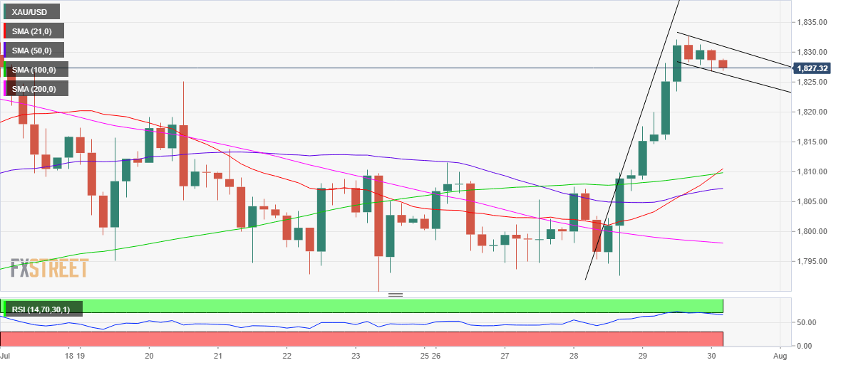 Gold price rallied nearly $23 on Thursday to reach the highest levels since July 15 at $1732, as the bulls got a fresh boost after piercing through the 200-Daily Moving Average (DMA) at $1821. Gold price settled the day at $1828, well above the 200-DMA.