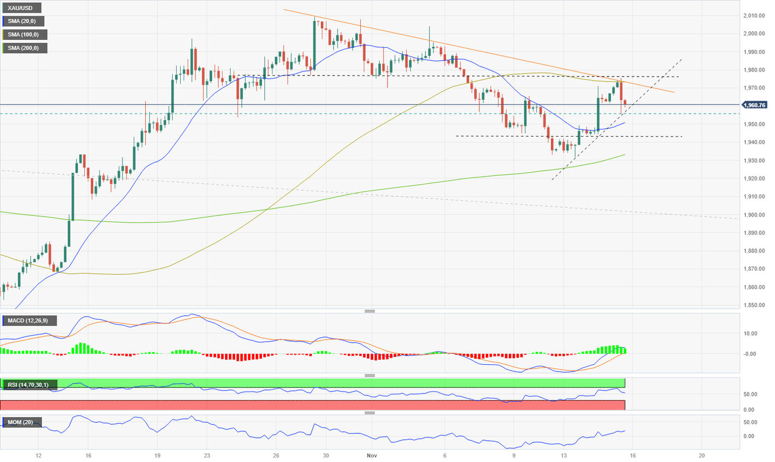 XAU/USD Current price: $1,961.14