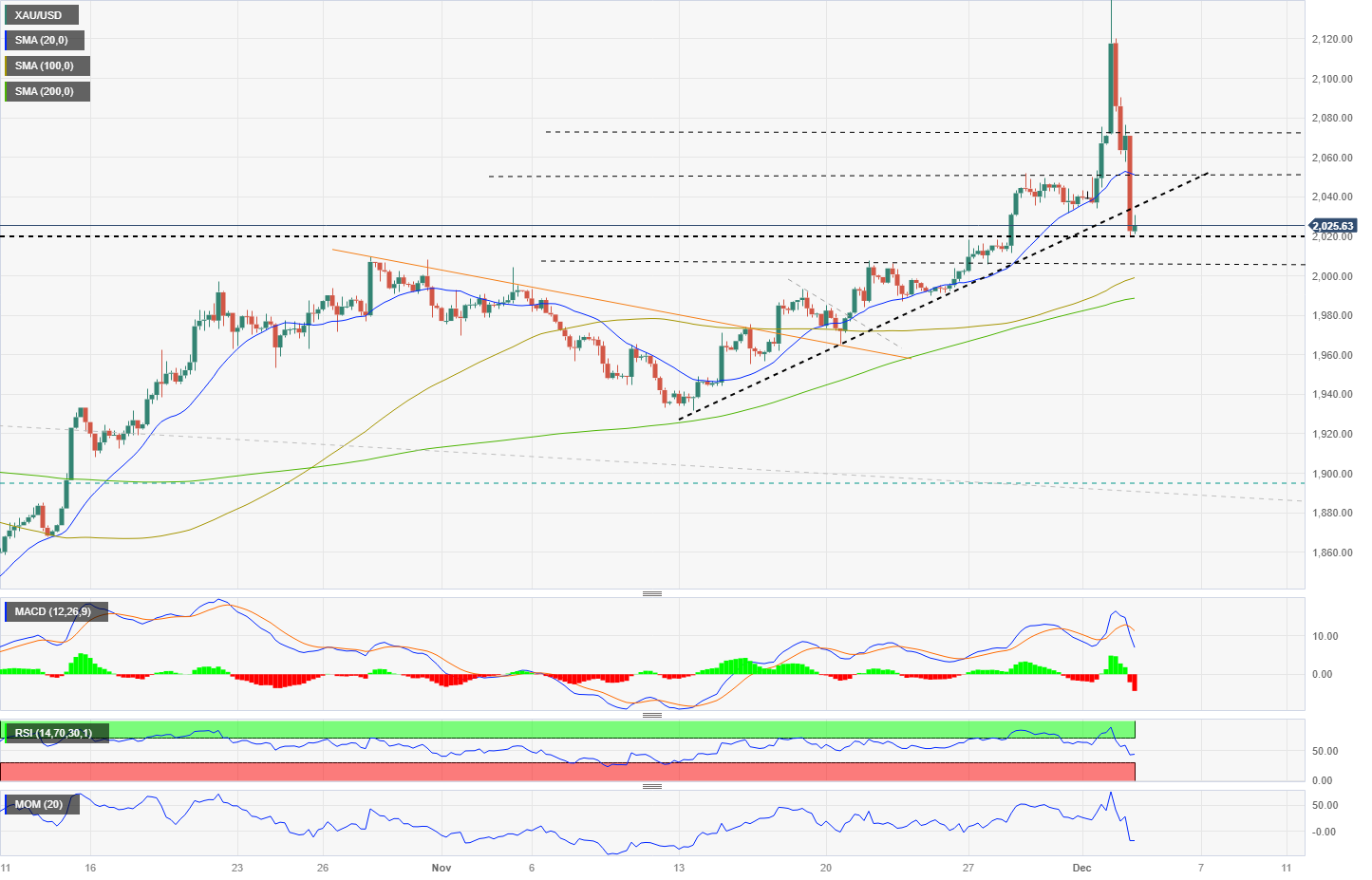 XAU/USD Current price: $2,025