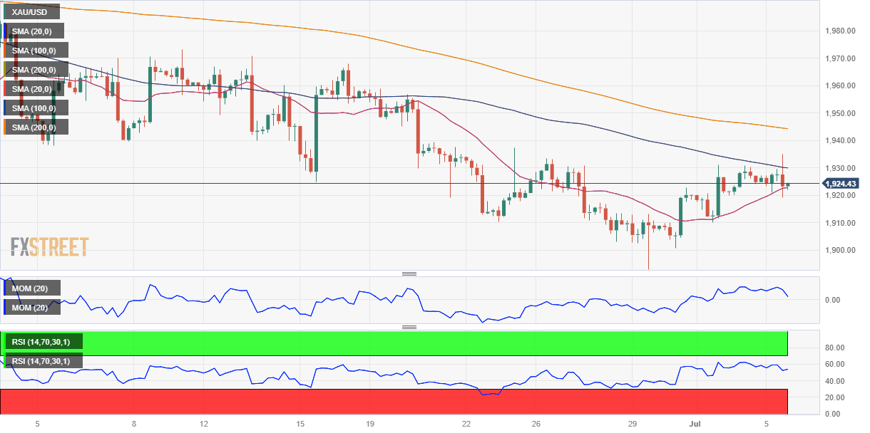 - XAU/USD is unable to retain intraday gains, somehow discouraging for bulls.