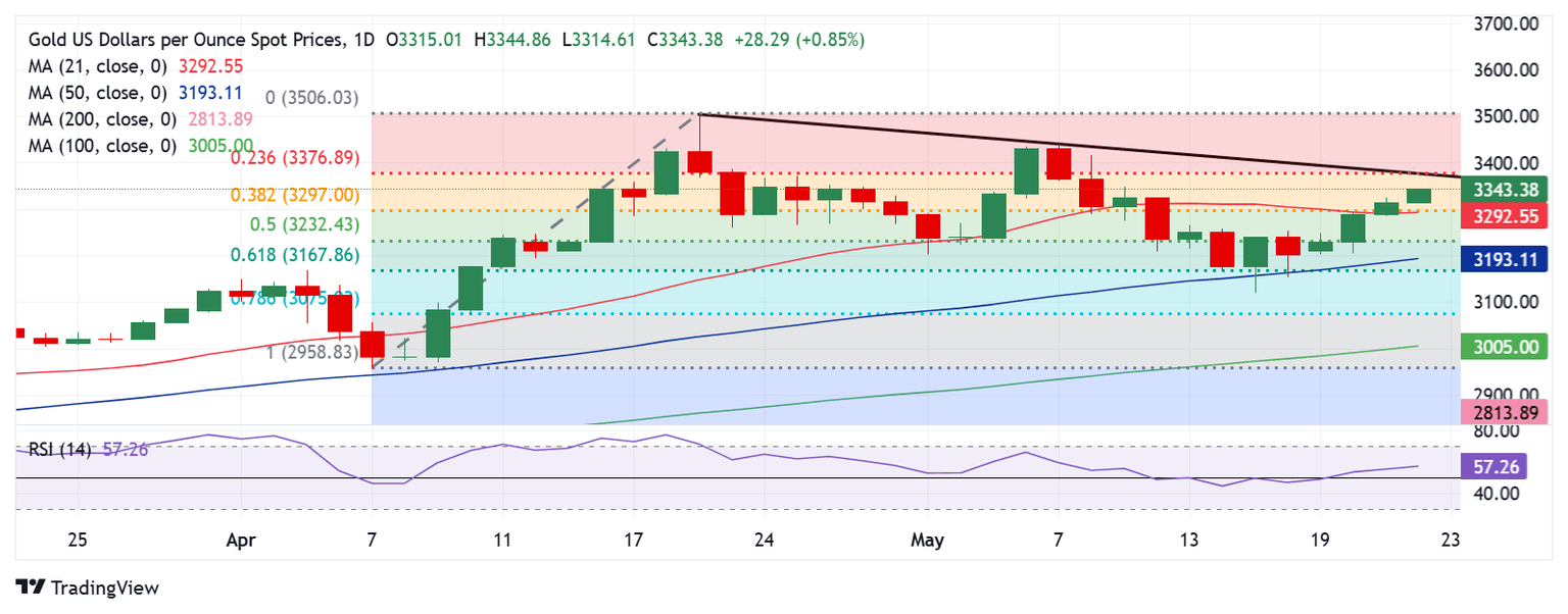 - Gold price eyes a break above the key falling trendline resistance at $3,380 amid bullish RSI.