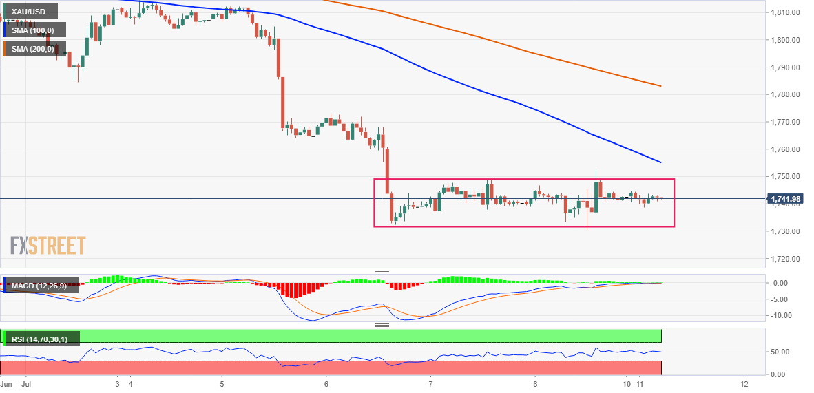 Gold Price, so far, has struggled to gain any meaningful traction and remained in a narrow trading band for the third successive day on Monday. Given the recent fall to the lowest level since September 2021, around the $1,733 area touched on Friday, the range-bound price action might be categorized as a consolidation phase before the next leg down. The underlying strong bullish sentiment surrounding the US dollar, bolstered by hawkish Fed expectations, turned out to be a key factor that continued acting as a headwind for the dollar-denominated commodity.