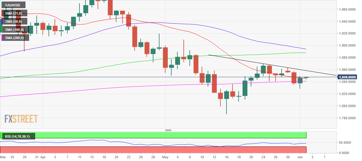 The yellow metal has opened Thursday above the bearish 21-DMA at $1,845, which is now acting as strong support.