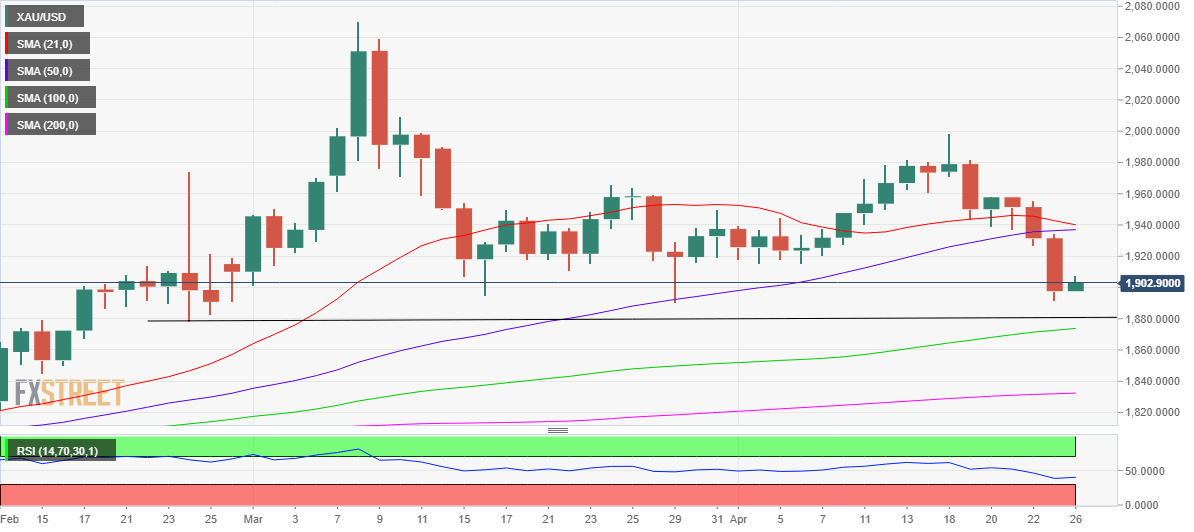 Gold Price Forecast: XAUUSD remains exposed to $1,880 on hawkish Fed bets