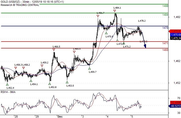 Short positions below 1478.00 with targets at 1471.00 & 1468.00 in extension.