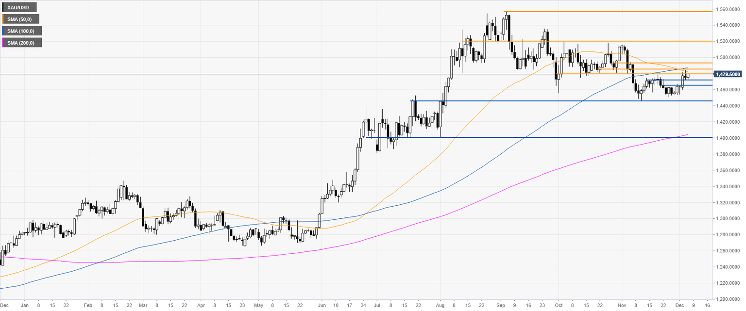 Gold kicked off December with a bullish reversal to the 1480 resistance. Just above the level the 50 and 100-day simple moving averages (SMAs) are also acting as dynamic resistances.