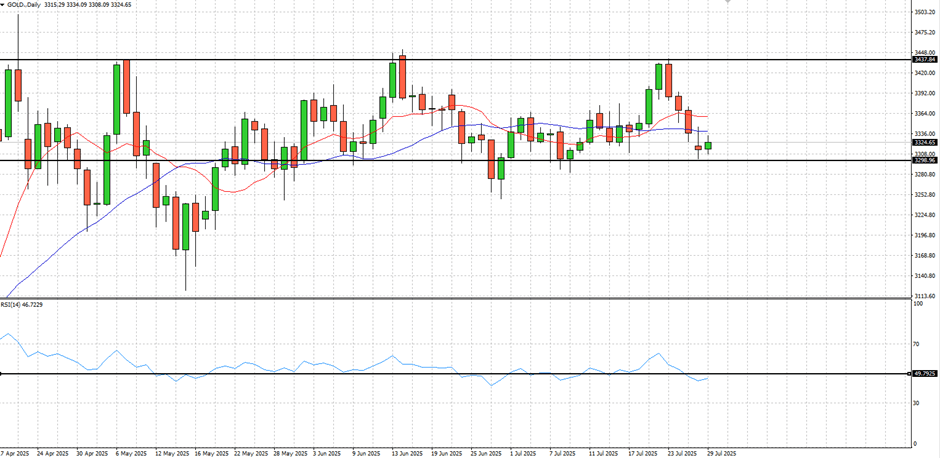 Today’s move saw XAUUSD rally from its floor of $3,299, climbing to an intraday high of $3,334 earlier in the session.