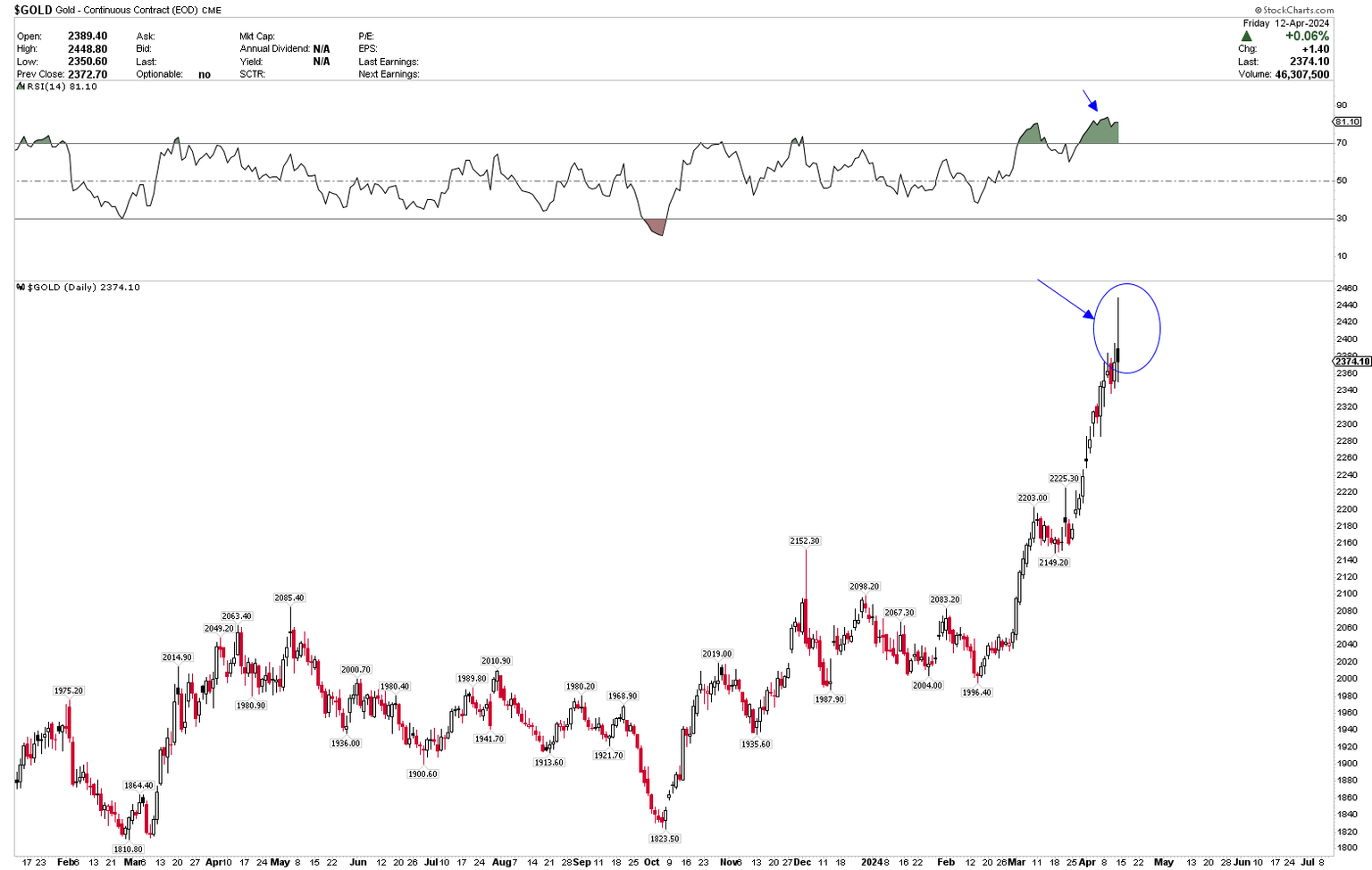 As the situation in the Middle East unfolds, the implications for regional stability and global economic dynamics will continue to evolve. Traders and investors must stay informed and agile, ready to adapt to the rapidly changing landscape. Gold and Silver will likely remain upward during these crises, so any technical overbought conditions may be ignored.