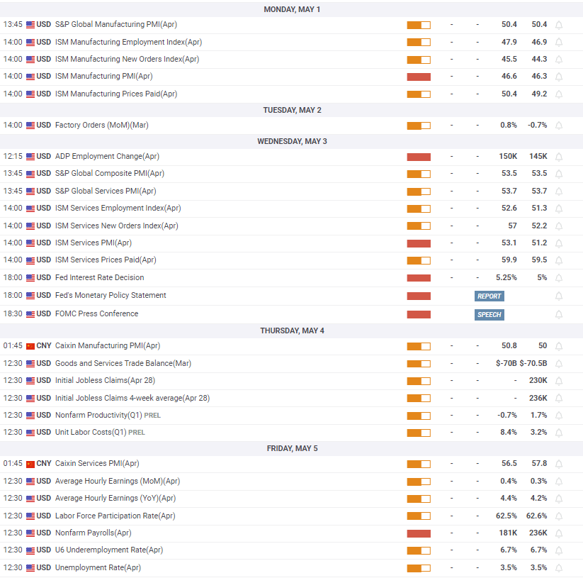 On Monday, the US economic docket will feature the ISM Manufacturing PMI for April, which is unlikely to have a noticeable impact on the USD’s valuation. On Wednesday, the ISM Services PMI survey and the ADP’s private sector employment report should be ignored by investors ahead of the Fed’s policy decisions.