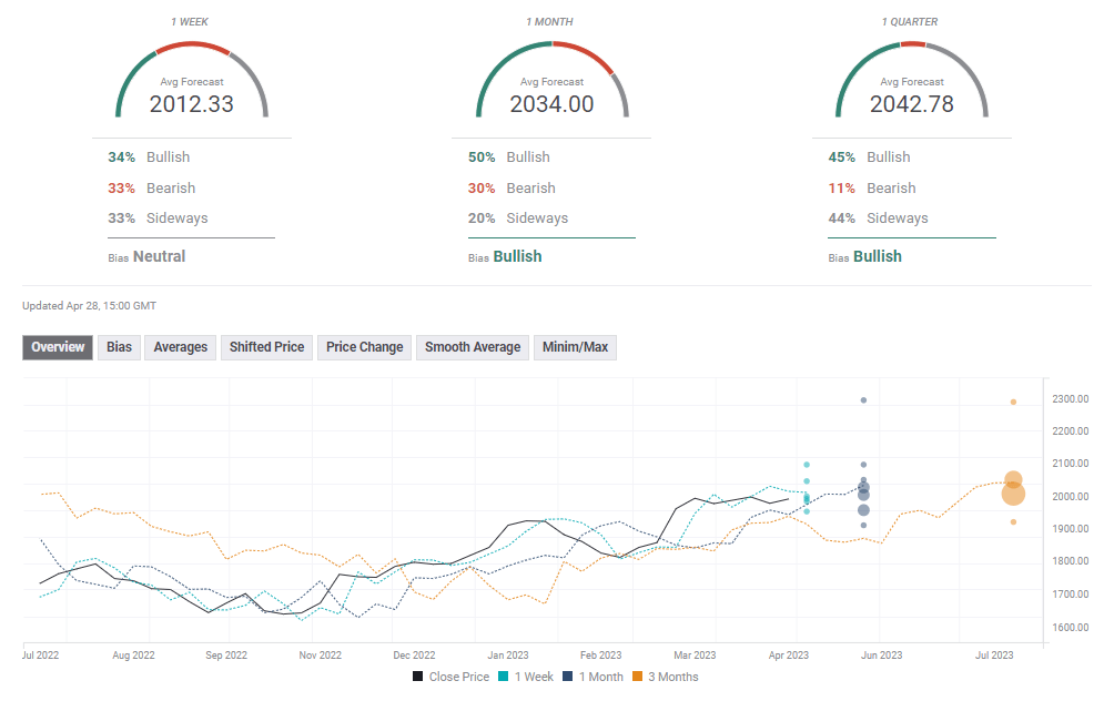 FXStreet Forecast Poll paints a mixed picture in the short term while the one-month outlook remains bullish with an average target of $2,035.