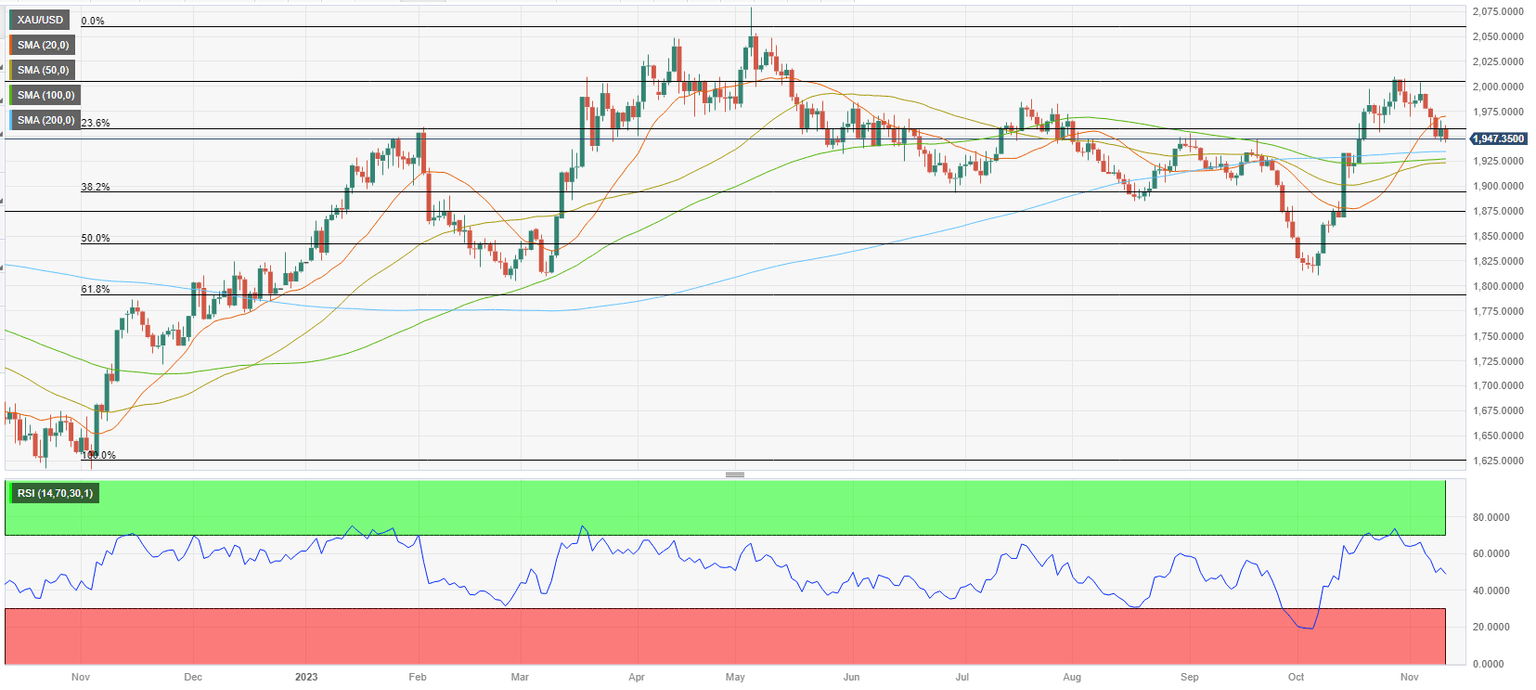 On the upside, $1,960 (Fibonacci 23.6% retracement) aligns as immediate resistance before $1,975 (20-day SMA). A daily close above the latter could attract buyers and open the door for an extended rebound toward $2,000 (psychological level, static level).