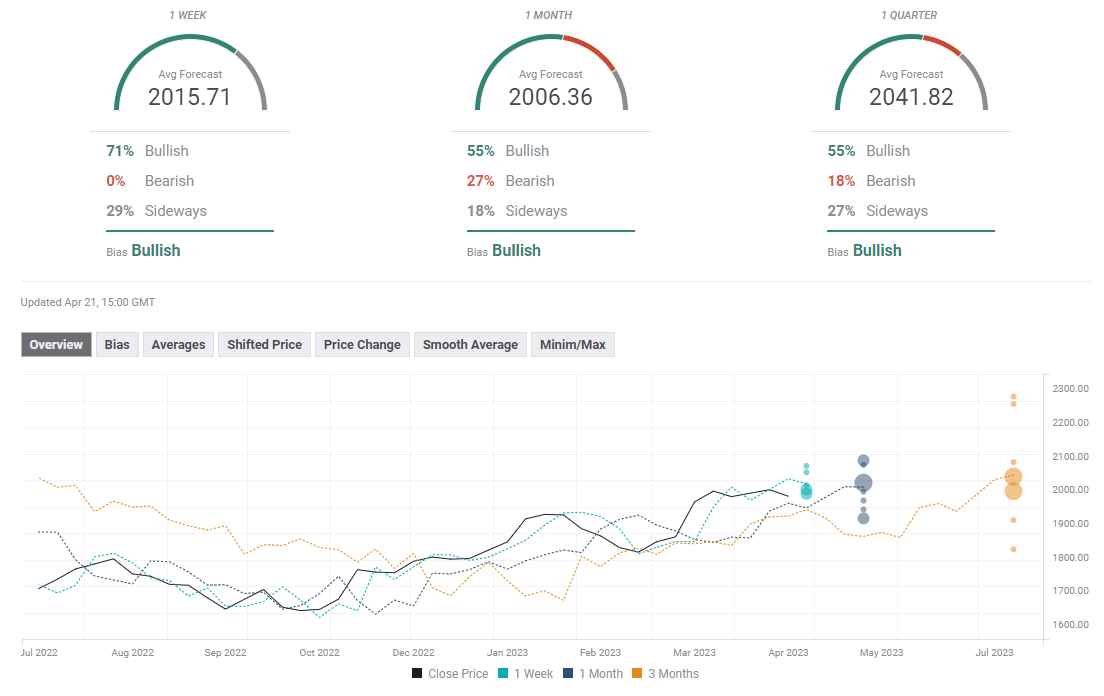 Despite XAU/USD's uninspiring performance, the FXStreet Forecast poll points to an overwhelmingly bullish bias in the short term. The one-week average target of polled experts is located at $2,015.