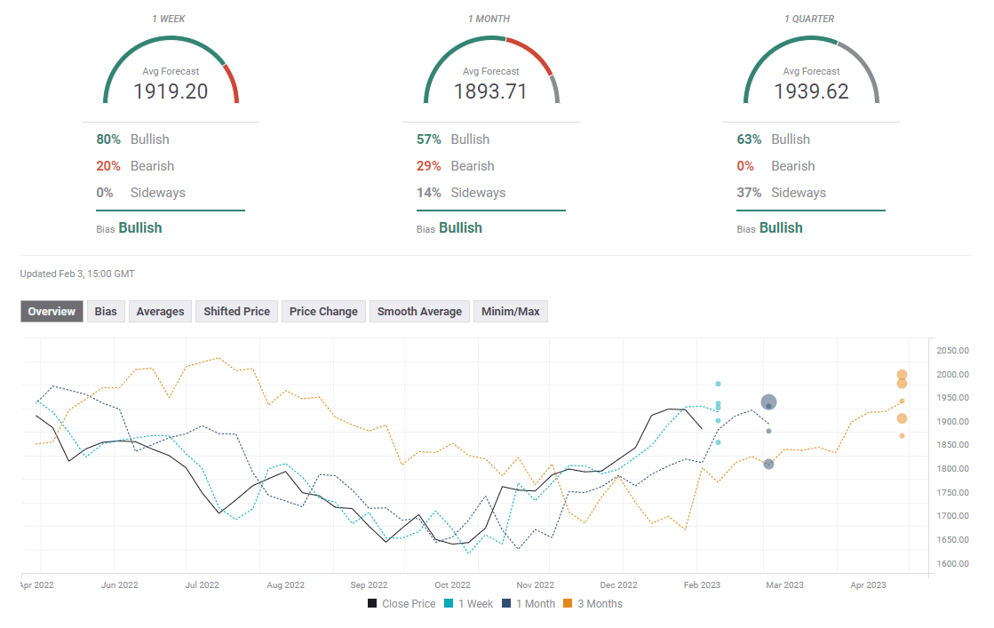 Despite the recent losses, FXStreet Forecast Poll shows that a large portion of polled experts hold a bullish view for XAU/USD in the short term with the one-week average target aligning near $1,920. The one-month outlook offers a mixed picture.