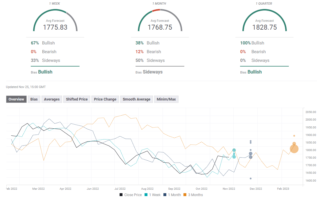 The FXStreet Forecast Poll shows that XAU/USD near-term outlook is overwhelmingly bullish with the one-week target sitting at $1,775. The one-month outlook remains mixed but the majority of polled experts see Gold price rising above $1,800 on a one-quarter view.
