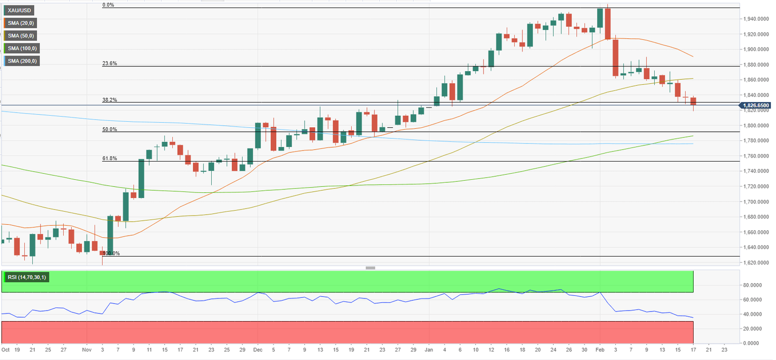 In the meantime, Cleveland Fed President Loretta Mester said the Fed will need to go above 5% and stay there for a while to control inflation. Mester also noted that she saw a 'compelling case' for a 50 basis points (bps) rate hike at the last FOMC meeting but added she was not ready to say if a bigger increase in the policy rate will be needed in March. Similarly, St. Louis Fed President James Bullard noted that continued policy rate increases will help them ‘lock in a disinflationary trend' in 2023. The benchmark 10-year US Treasury bond yield gained more than 1% for the third straight day on Thursday and continued to stretch higher toward 3.9% early Friday, helping the USD outperform its rivals and forcing XAU/USD to drop below $1,830 for the first time since early January.