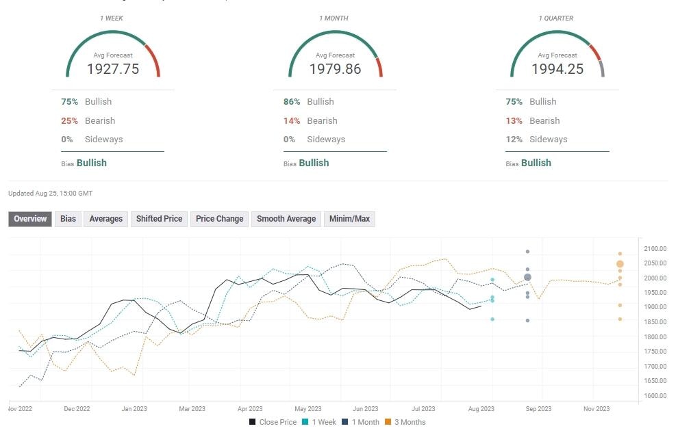 The FXStreet Forecast Poll indicates that most experts anticipate Gold prices to move higher, with many expecting prices to exceed $2,000 within a one-quarter perspective. Analysts foresee modest price increases for the upcoming weeks, with the average price estimate at $1,980 in a one-month view.