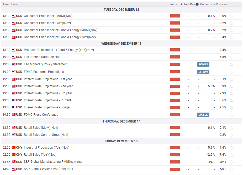 The Consumer Price Index (CPI) data for November will be released on Tuesday. In October, the monthly CPI was unchanged. A negative print in this data could weigh on the USD with the initial reaction and provide a boost to XAU/USD. Investors will also pay close attention to the Core CPI reading, which is expected to increase 0.2% for the second consecutive month. A reading of 0.4% or higher could help the USD find demand.