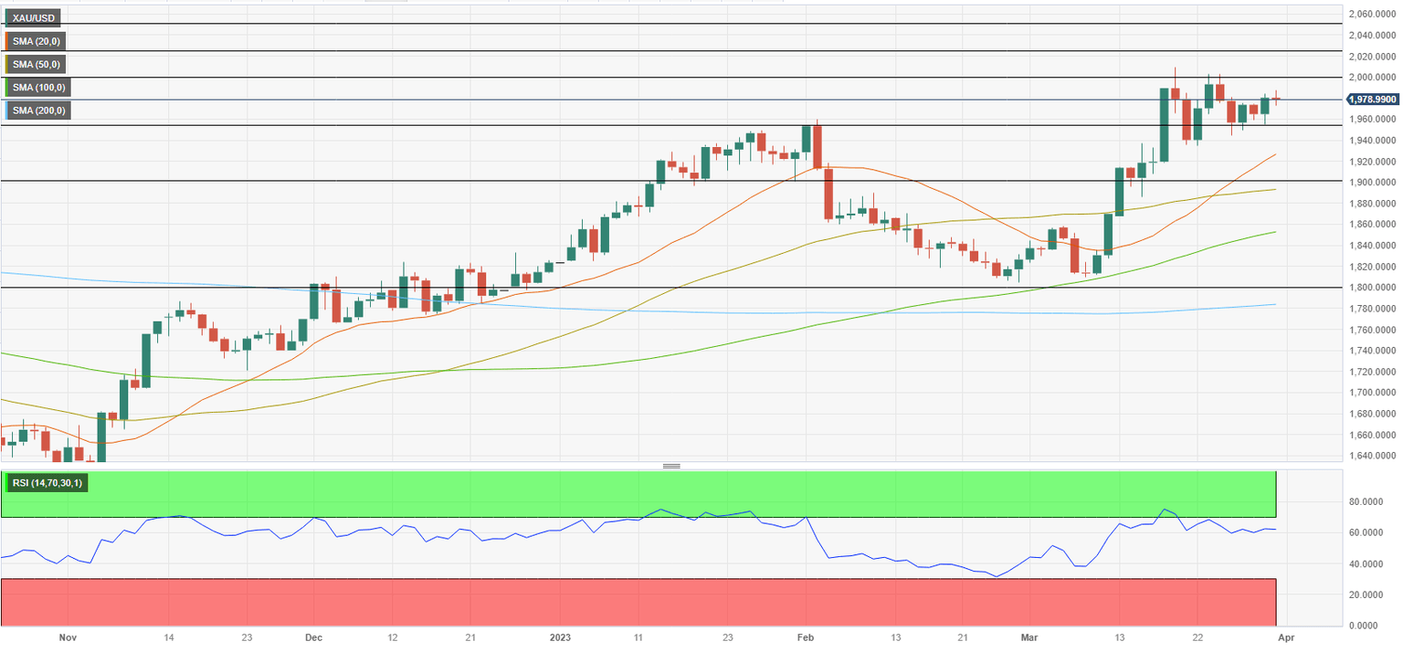 Following the rejection from $2,000 in the previous week, Gold price stayed under bearish pressure and suffered heavy losses on Monday. After staging a rebound on Tuesday, XAU/USD struggled to keep its footing on Wednesday but regained its traction ahead of the weekend. As markets remain indecisive about the US Federal Reserve's (Fed) next policy step, next week's jobs report for March could trigger the next big action in the pair.