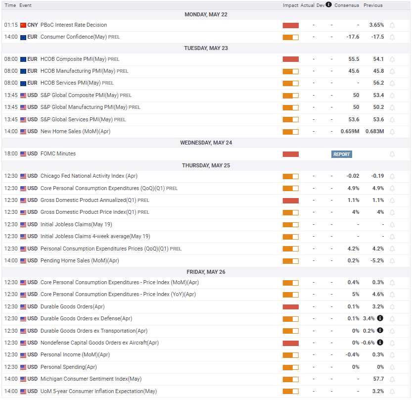 - Key events next week include the FOMC minutes and US PCE inflation data.