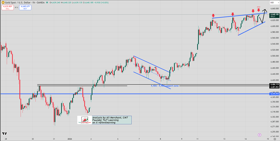 · Spot gold must clear $4,642–$4,645 to unlock upside momentum.