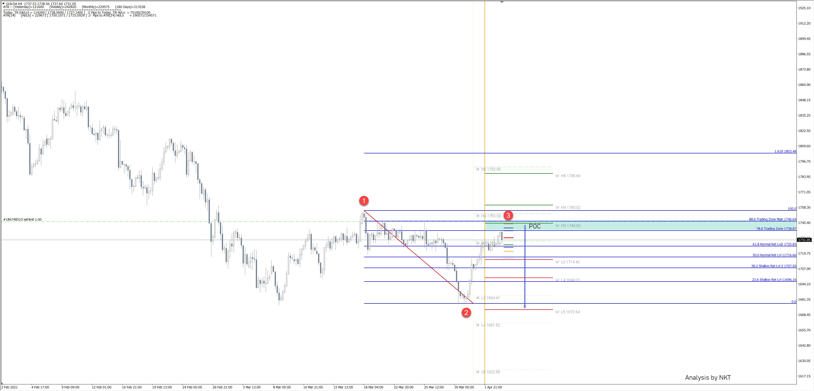 1738-1746 zone should provide us with bearish rejection. W H3 is an additional level which provides confluence to bearish gold outlook. 1-2-3 pattern is in play. Targets are 1725 followed by 1714, 1699 and eventual retest of 1672. I don’t expect all targets to be hit at once but possibly during the week or next week.