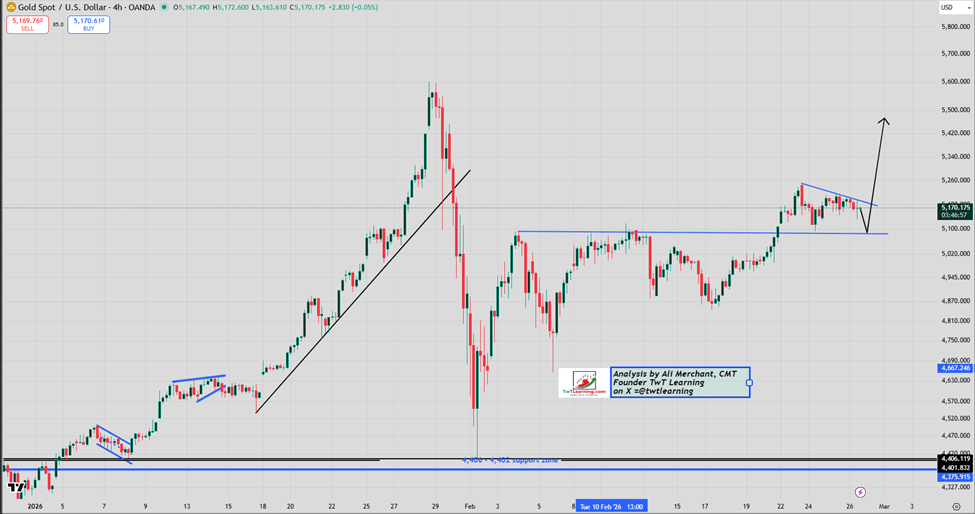 · Gold is challenging a nearby resistance around $5,200 - $5,250.