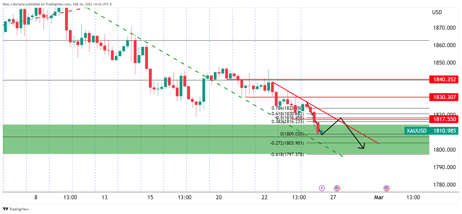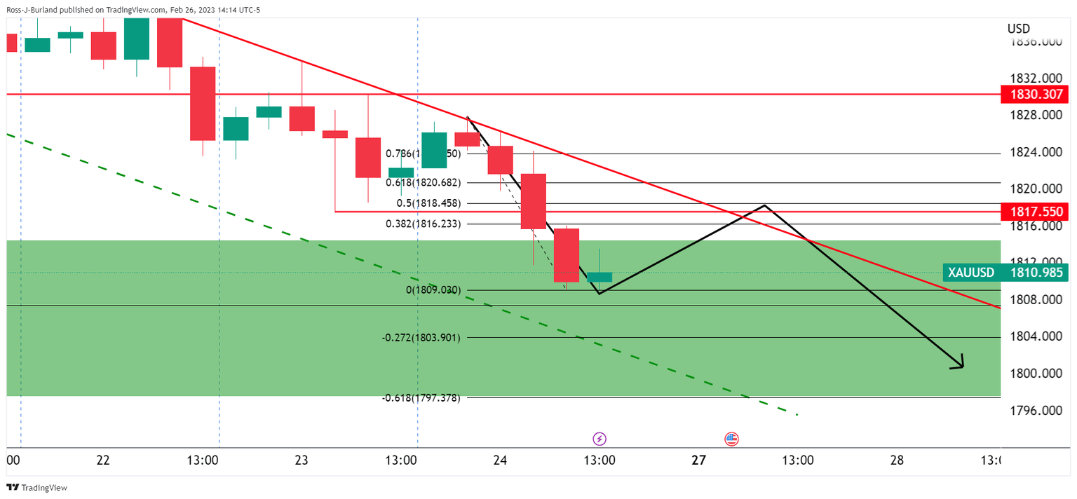 Gold price ended lower for a fifth-straight day on Friday as the market adjusted for higher for longer from the Federal Reserve due to evidence that the economy is running hot. Gold price fell from trendline resistance mid-week and extended the losses to a fresh cycle low of $1,809 while US Bond yields also climbed.