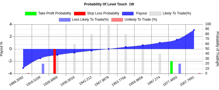 We are 50% confident that $ 1,916.2686 could trade and that $ 1,932.2712 could trade. These levels are within statistical probability.