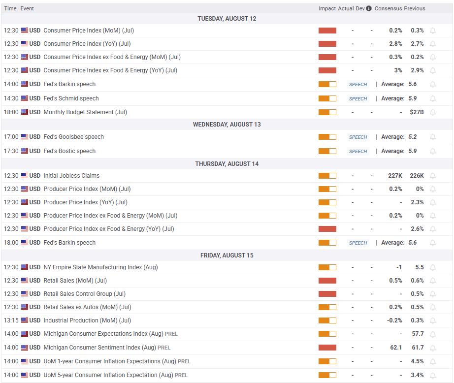 The US Bureau of Labor Statistics will publish the Consumer Price Index (CPI) data for July on Tuesday. Investors expect the headline annual CPI inflation to edge higher to 2.8% from 2.7% in June and see the core CPI rising 0.3% on a monthly basis. Markets are largely convinced that the Federal Reserve (Fed) will cut the policy rate by 25 basis points (bps) in September.